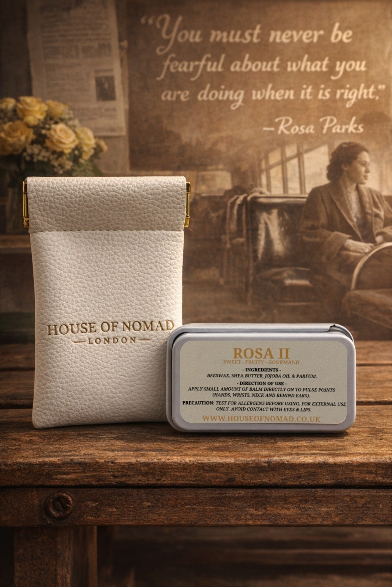 As it settles, the heart of the fragrance opens with patience. Iris brings a calm, powdery steadiness, while jasmine and orange blossom offer softness and light, like kindness carried through long days. There is beauty here, but it is disciplined beauty, never excessive, always purposeful.